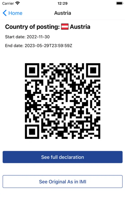 EU IMI Declarations are managed and created by our (or similar) CRM System at IMI EU official web portal and downloaded to user mobile device (s), to be presented at any time to the government agency, if required. IMI Declarations are always valid and up to date.