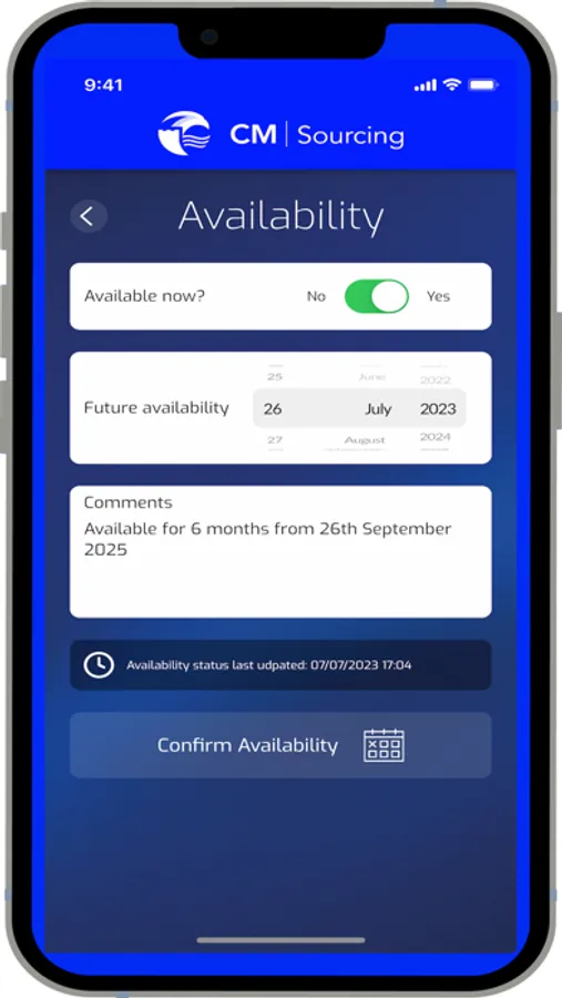 Check for contracts, set your current availability at the push of a button and outline details on your future availability to help maximise contract opportunities.