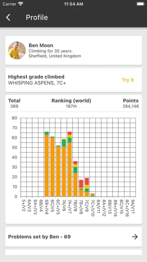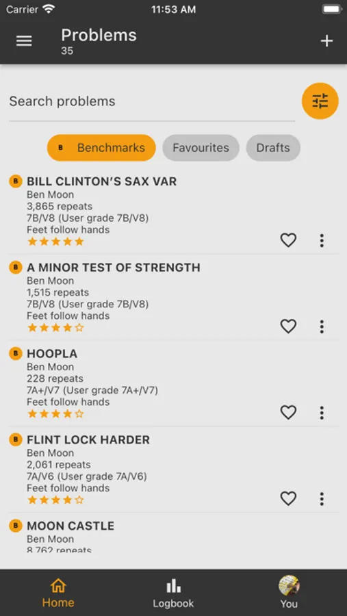 Create multiple lists of problems (e.g. warm ups, favourites, projects, training routines.