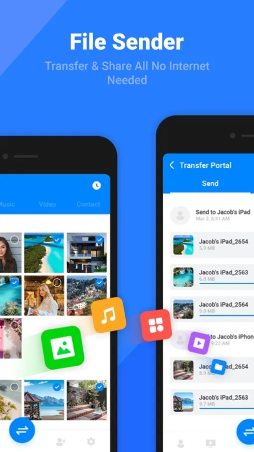 File Sender is an Fast Sender App. You can use it to Share Files, Share Apps , Share Videos and Share All without Internet. You can Share Files with File Sender.