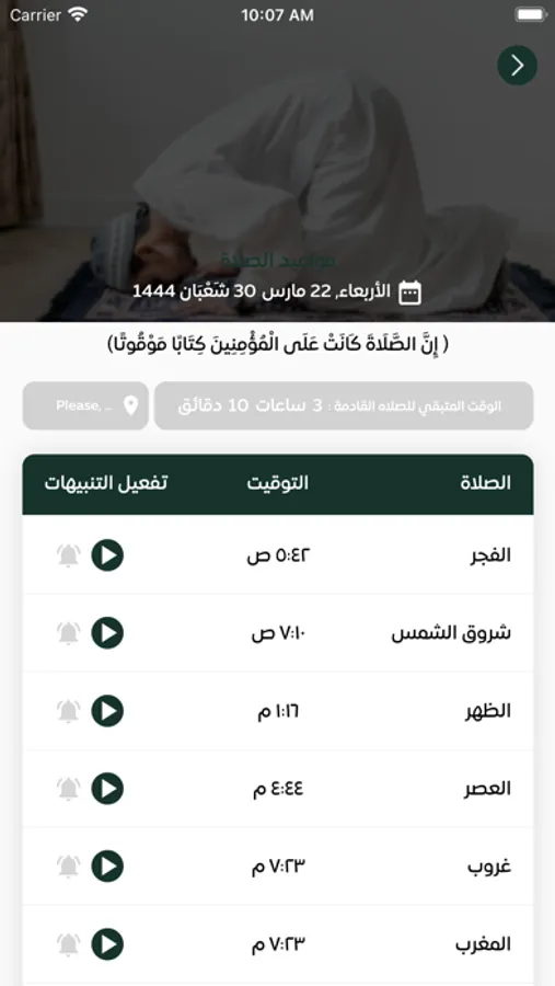 ٤- مواقيت الصلاه مع منبه وصوت الأذان
