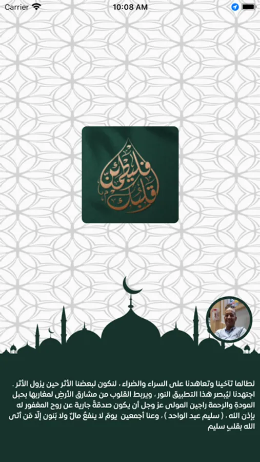 اجتهدنا ليُبصر هذا التطبيق النور ، ويربط القلوب من مشارق الأرضِ لمغاربها بحبل المودةِ والرحمة راجين المولى عز وجل أن يكون صدقةً جارية عن روح المغفور له بإذن الله ، ( سليم عبد الواحد ) ، وعنا أجمعين