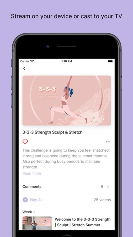 2. Customisable Training Library: Tailor your fitness journey according to your preferences and goals. Our app allows you to create personalised training playlists, combining barre, Pilates, Strength & Mobility workouts that align with your fitness targets and individual needs.