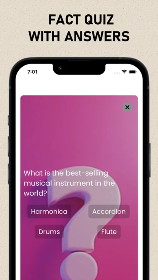 With this amazing facts app, you can play facts games and quizzes to test your facts knowledge. Just answer the facts questions everyday and become the ultimate Facts Master. If you can't answer the facts questions or facts quiz, no worries, just read our collection of facts everyday with our daily reminder and learn more. This is the perfect facts hub app or facts channel where you learn and test your facts knowledge.