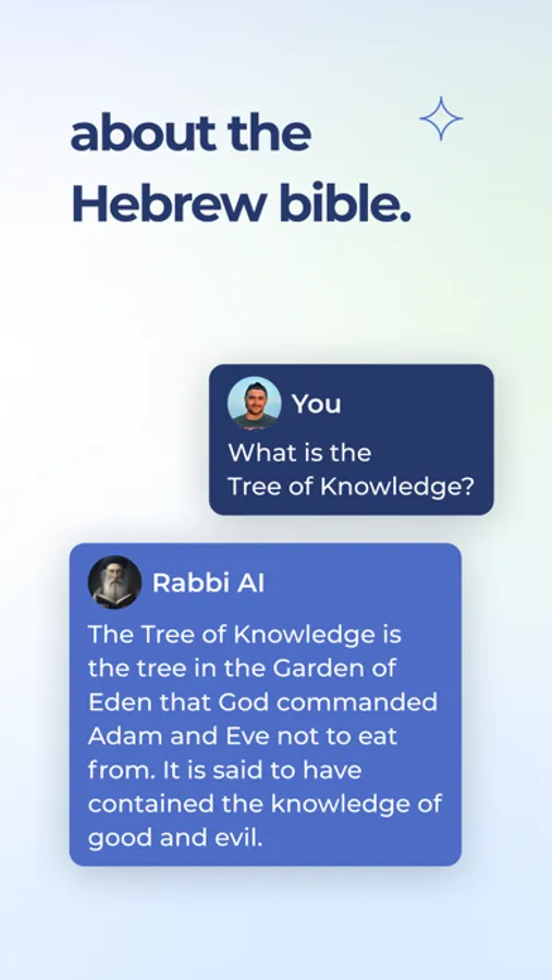 From questions about the history of the Jewish people to insights into the meaning of key Biblical passages, Rabbi AI has you covered. Our app is easy to use and always available to provide the answers you seek. You can be sure that you're getting the most relevant information possible.