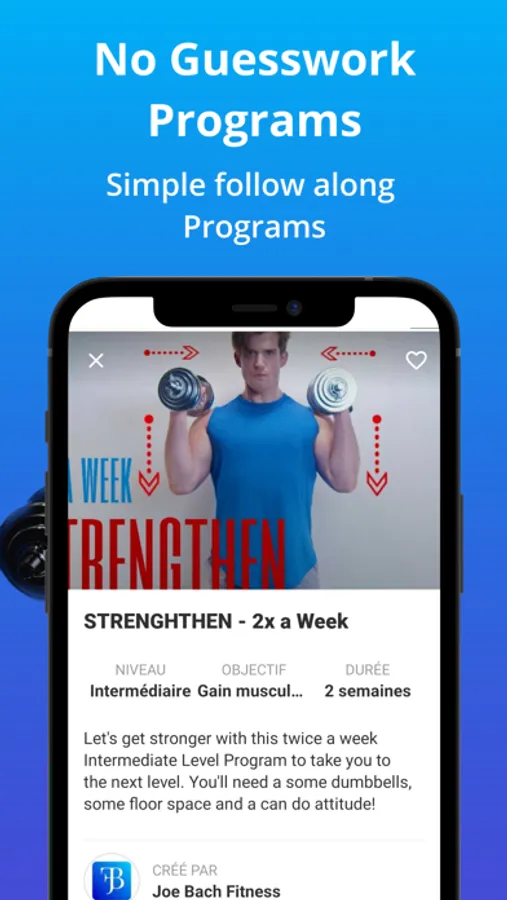 Get back in shape, create your own sports routine, lose weight, work on your cardio, strengthen your muscles, get into sports, feel good about your body, for all these objectives. Joe Bach Fitness accompanies you through various training programs that you can do at home, outdoors, at the gym, with equipment and body weight.
