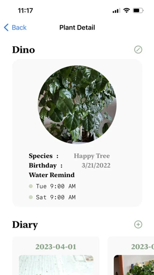 You can create a profile for each of your plants, including name, birthday, and picture, which helps you manage your plant