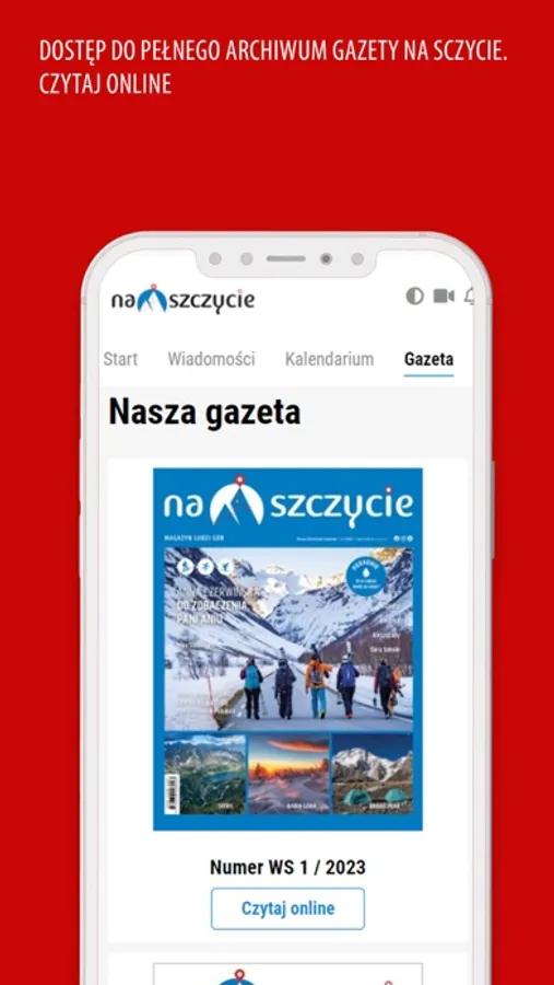 Magazyn Na Szczycie to relacje z gór wysokich, rodzimych szlaków, wypraw bliskich i dalekich. Począwszy od tatrzańskich czy beskidzkich wędrówek, aż po alpejskie szczyty i himalajskie lodowce. Każdy numer uzupełniają inspirujące wywiady, testy sprzętu, galerie i praktyczne poradniki. A także recenzje książek o tematyce górskiej, felietony oraz reportaże z ekspedycji w najodleglejsze pasma górskie. Czasopismo tworzone jest przez ludzi gór, ekspertów i czytelników dla wszystkich górskich pasjonatów.