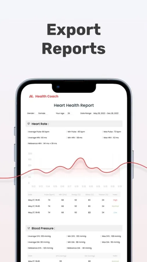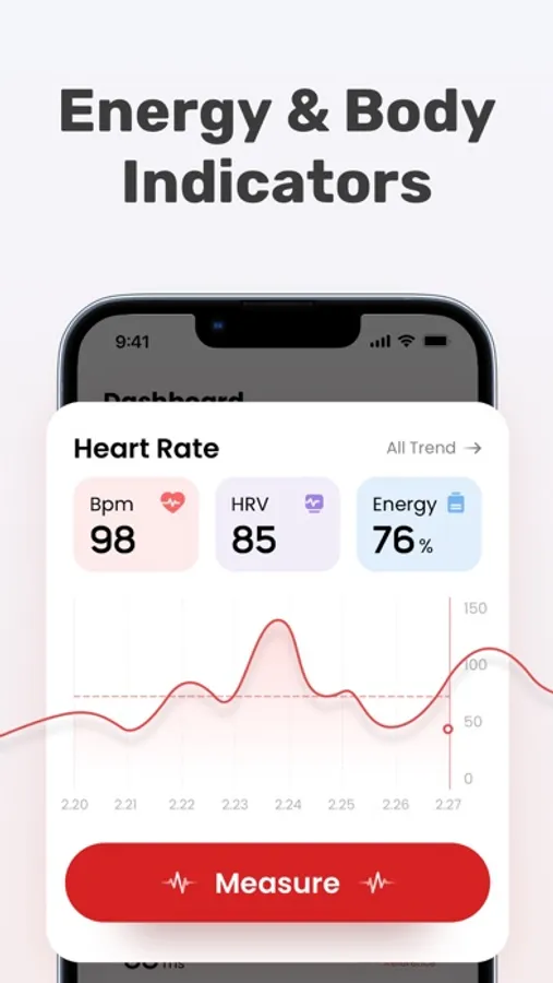 • Energy and HRV monitoring: Track your physical indices, including heart age, stress levels, BMI, and BMR, to help you better understand your overall health.
