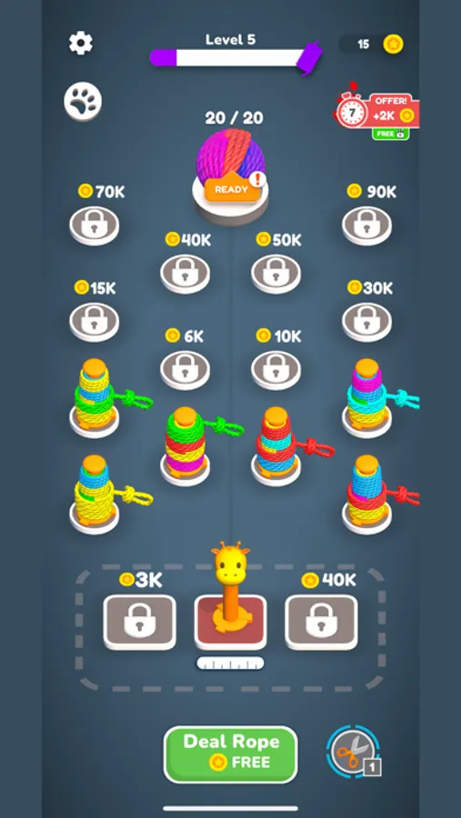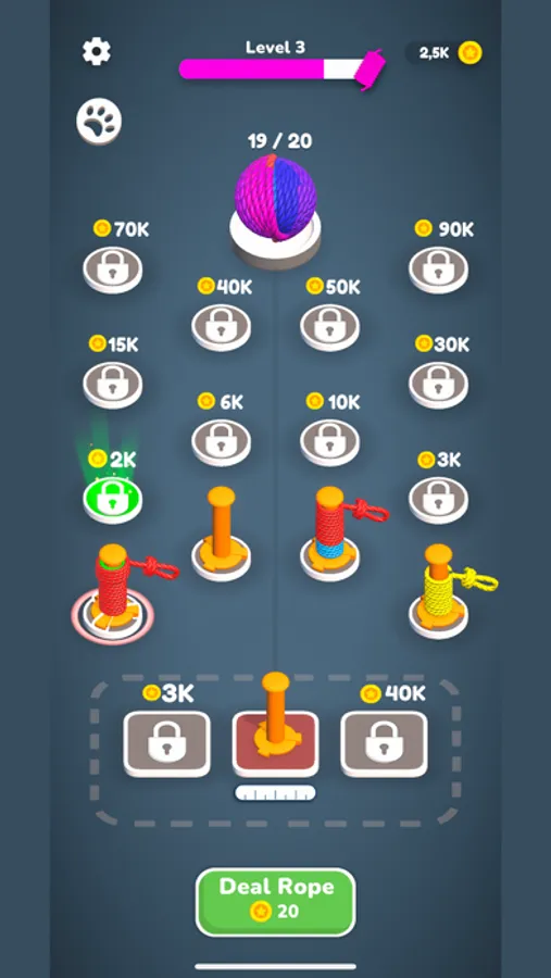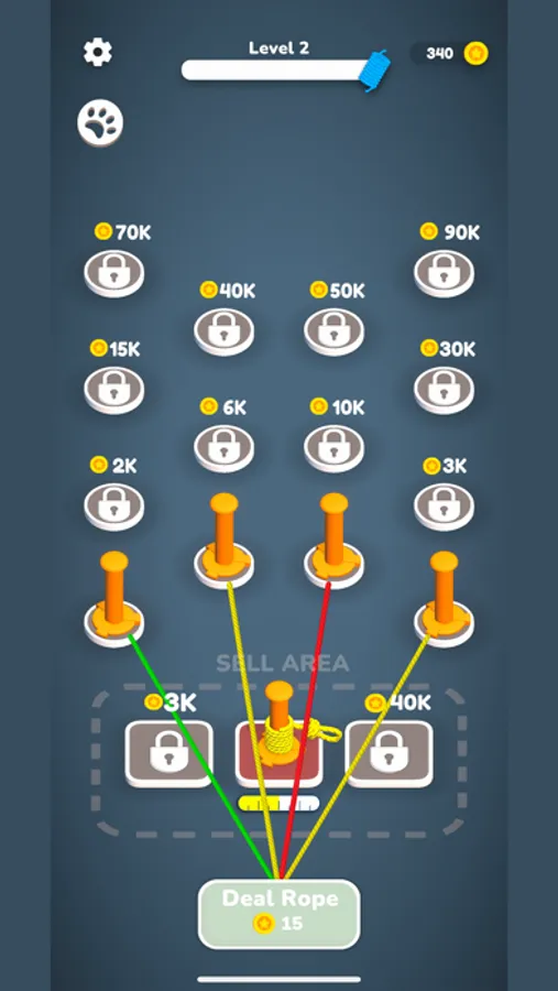 Solve the game by lining up the colored ropes. Think, strategize and predict every move.