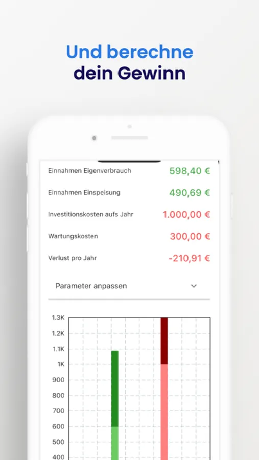 Die Solar-Rechner-App ist Ihr zuverlässiger Helfer, um den finanziellen Gewinn Ihrer Photovoltaikanlage genau zu ermitteln. Unsere benutzerfreundliche App berechnet die voraussichtlichen Erträge basierend auf einer Vielzahl von Faktoren, einschließlich der Größe der Anlage, dem Standort und der örtlichen Wetterbedingungen.