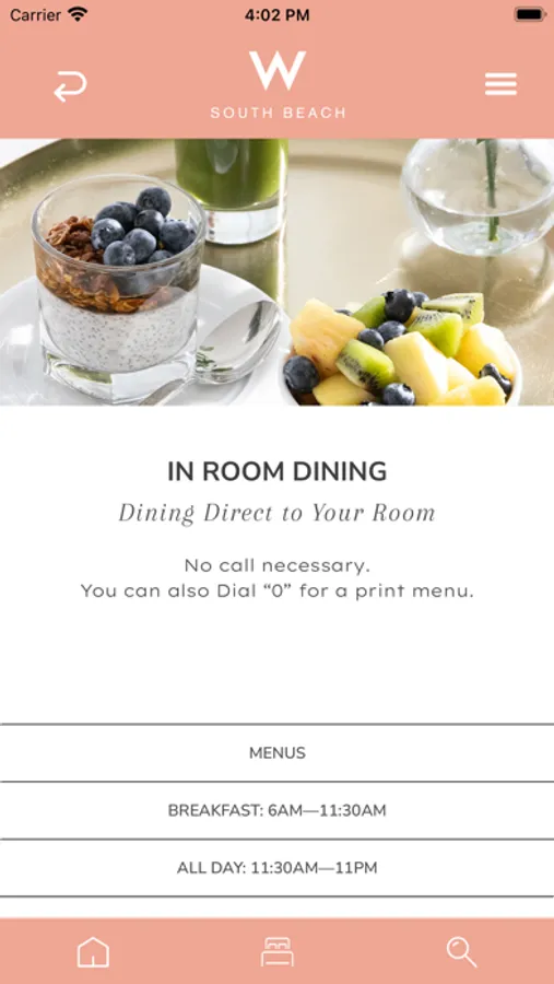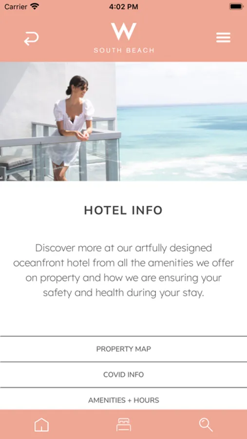 The W South Beach app lets you use your mobile device to enhance your experience at W South Beach hotel. Manage your stay, book reservations, explore amenities and dining options, stay up to date with events and communicate with our team.