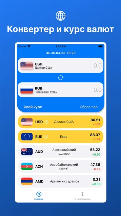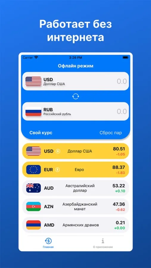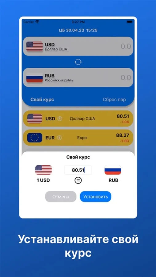 - Собственный курс. Быстро конвертируйте валюту по нужному вам курсу.