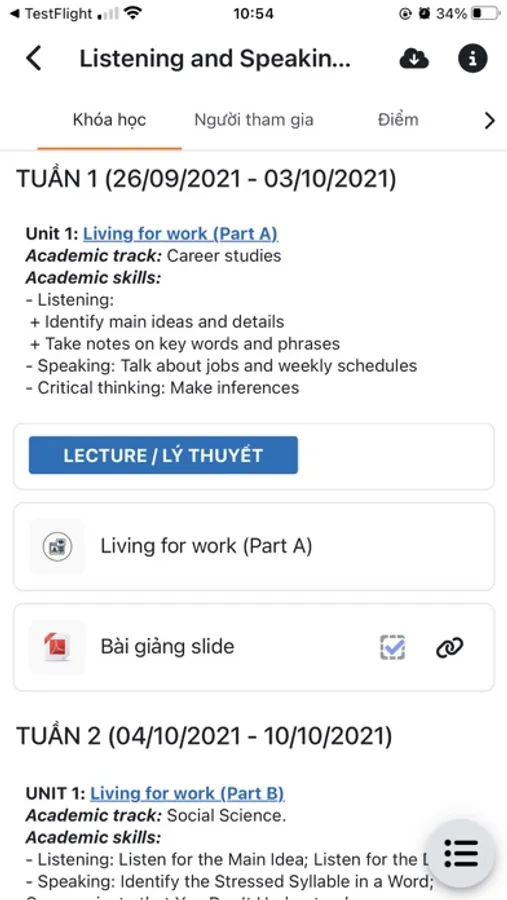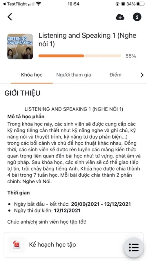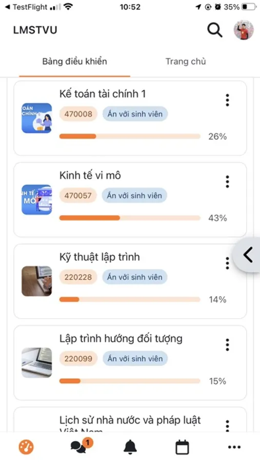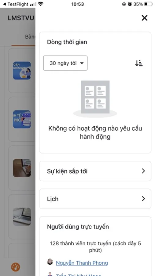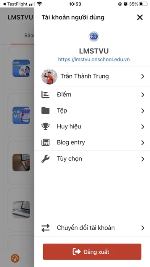 Ứng dụng di động học tập trực tuyến LMS TVU, học sinh có thể truy cập khoá học trên hệ thống quản lý đào tạo Các tính năng trên ứng dụng bao gồm: