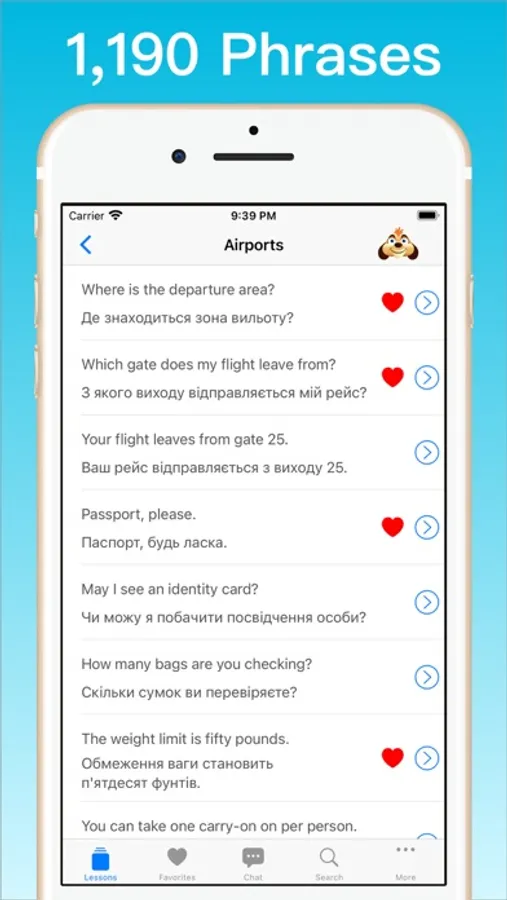 • 1,190 useful phrases such as “Can you speak slowly?” and “Where is the closest cash machine?”.