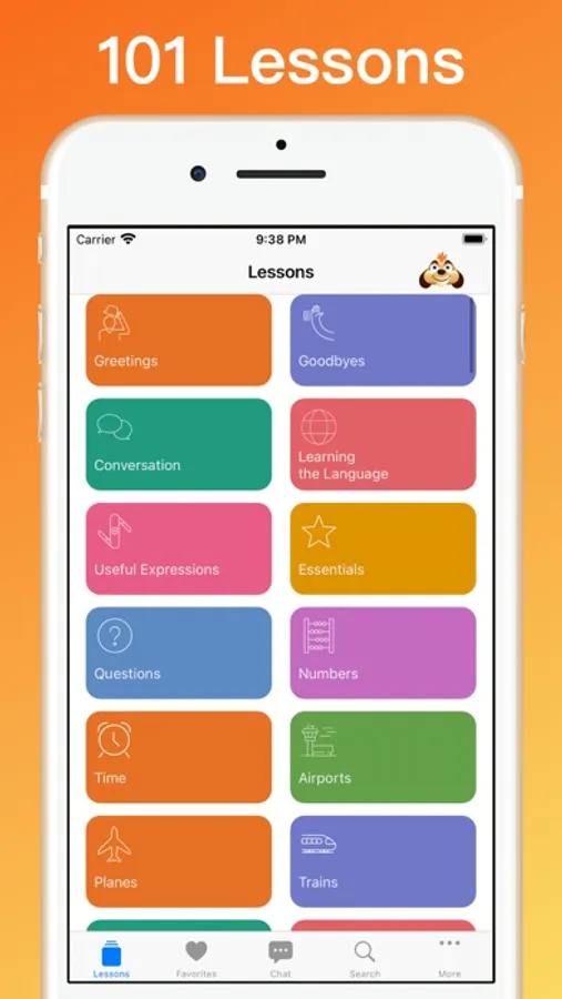 • 101 lessons for real-life situations like taking Taxis, arriving at a Hostel or asking about the Weather. Fun lessons such as Flirting and Swearing.