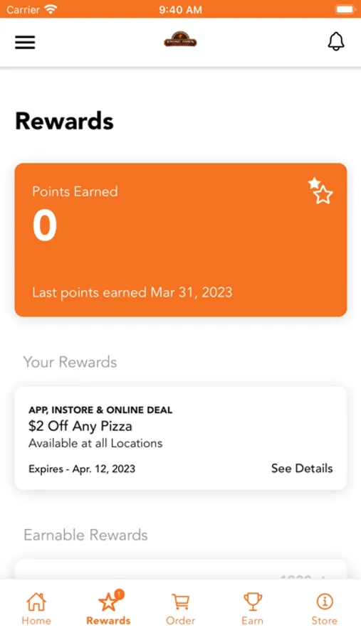 Stone Oven Pizza App - Earn and track your rewards at participating stores