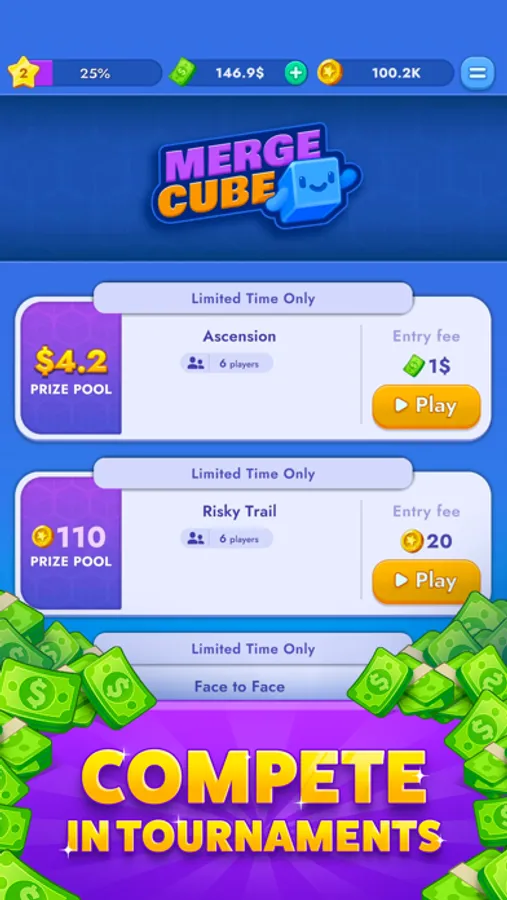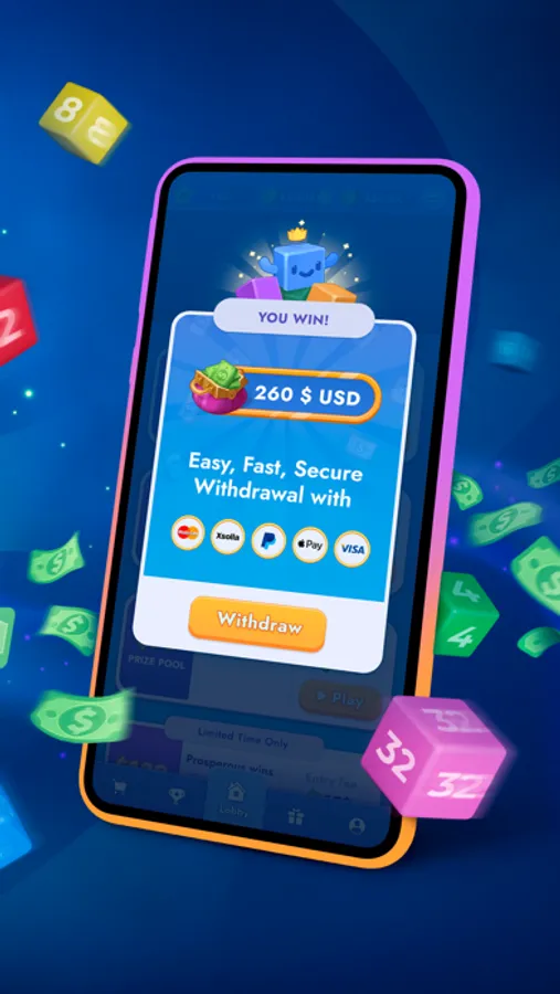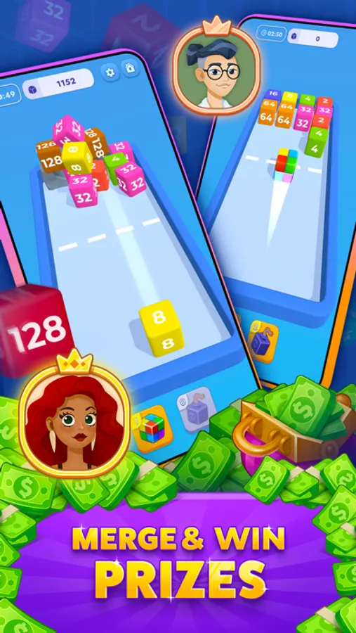 But why stop there? Keep merging blocks, rack up points, and beat your record! There are no limits! Earn points and win! The player with the most points wins the tournament!