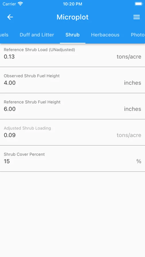 Fuels Data is designed for wildland management practitioners tasked with collecting surface fuels measurements in the field It automatically performs calculations and table lookups. Photos and data are linked together, which eliminates the need to diligently sequence reference photos to align with data. These features reduce the risk of mistakes in transcribing and reviewing collected data in the field. The collected data may also be uploaded to the Allen Institute for Artificial Intelligence to build and train fuel load estimation models.