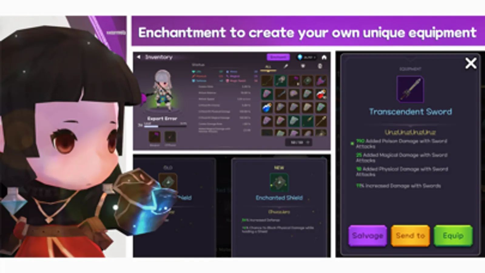 When you defeat monsters and level up, you have to choose one of three skills. Create a powerful build by combining enchanted equipment and skills!