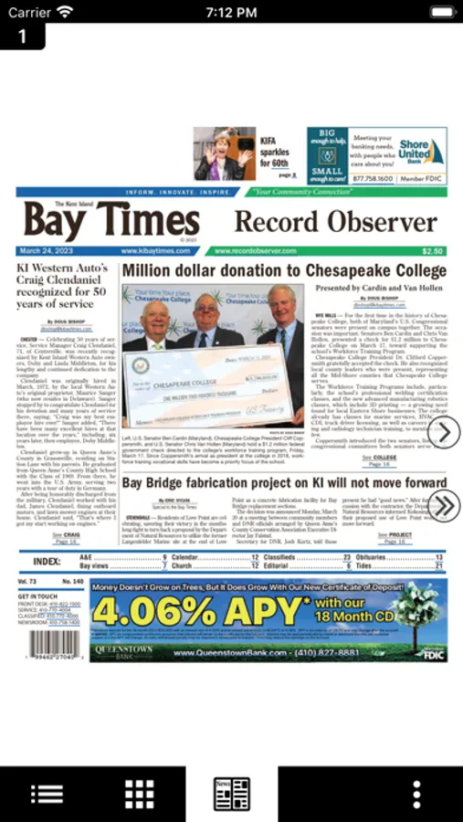 This is a digital replica of the printed Bay Times / Record Observer. This app is part of your all access membership. If you have questions about using the app please contact us at subscribe@chespub.com or call (410) 770-4005.