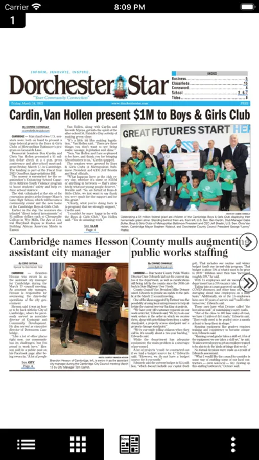 This is a digital replica of the printed Dorchester Star. This app is part of your all access membership. If you have questions about using the app please contact us at subscribe@chespub.com or call (410) 770-4005.