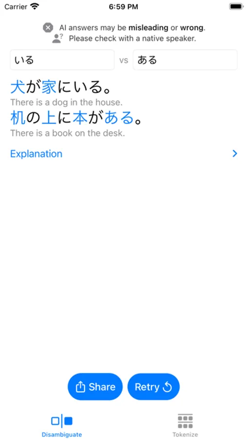 - Disambiguate: tell two similar words apart, and have GPT explain how they differ.