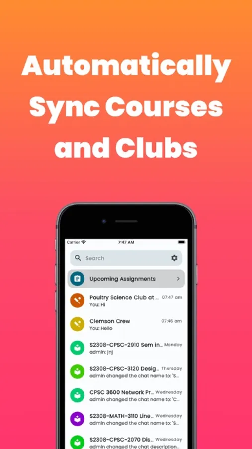 Boost your college experience with CourseBubble, the ultimate tool for academic success and social engagement! Say goodbye to missed assignments and disconnected study groups – CourseBubble seamlessly syncs with your Canvas or other College Learning Management System (LMS) accounts to create dynamic group chats for every class and club you're a part of.