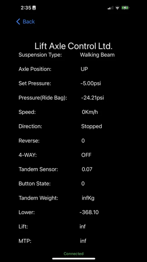 This app connects to specific peripherals to read information or data from dump trucks. To use the app the microcontroller should be properly installed in the truck and receiving the appropriate inputs.