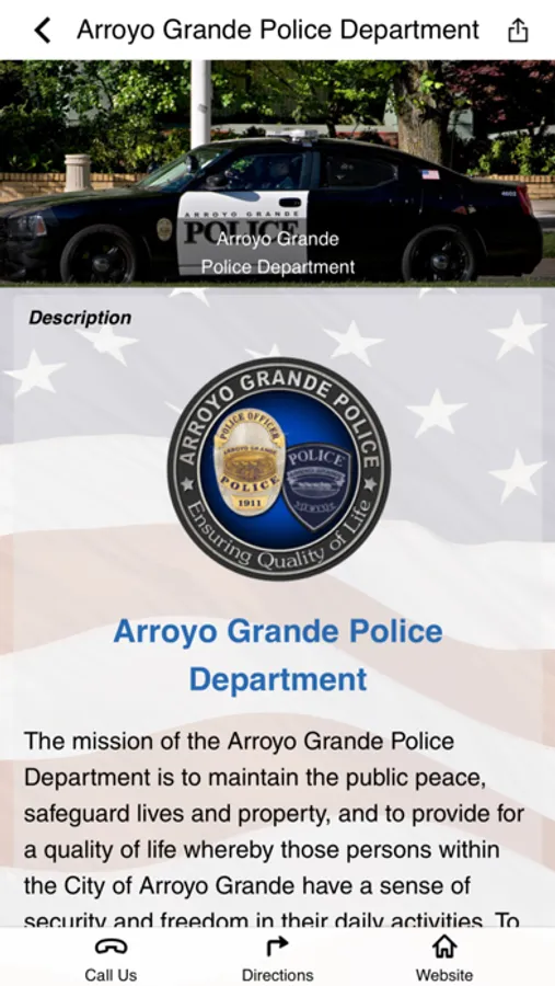 The mission of the Arroyo Grande Police Department is to maintain the public peace, safeguard lives and property, and to provide for a quality of life whereby those persons within the City of Arroyo Grande have a sense of security and freedom in their daily activities.