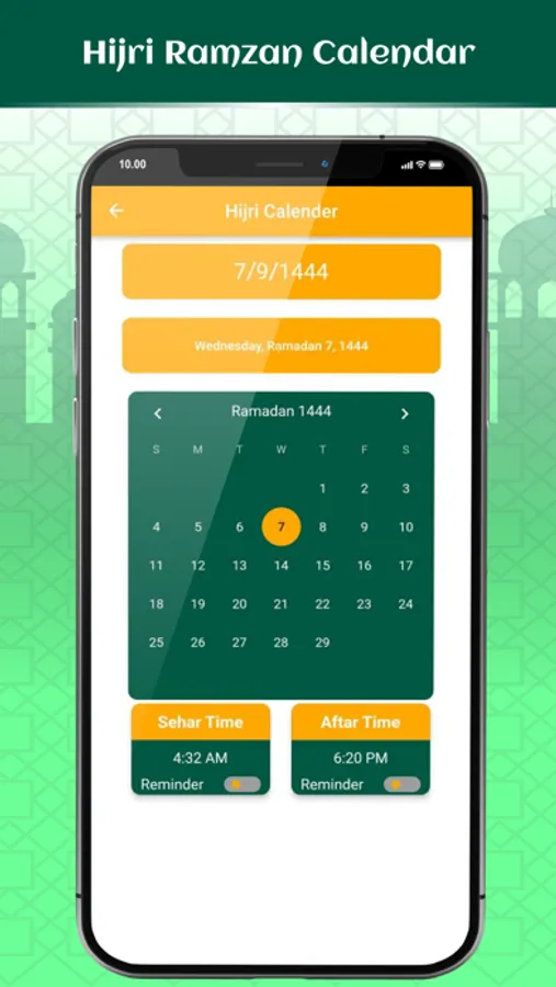 Islamic Calendar: Check out Islamic Calendar today with the Hijri calendar, Islamic Festivals, days, and dates. See Ramazan Timings in Ramadan for Sehri Iftar Time Table. Check Suhoor timings, sehri timings today, and Iftar time. Check Sehr times and Iftar times according to the Sunrise and Sunset of your GPS location. Islamic Calendar is a Hijri calendar that shows the dates of Islamic events, Islamic months, and holidays, including Muharram, Ramadan, Eid Al-Fitr, and Eid Al-Adha. The calendar can be set to display either the Hijri to Gregorian or Gregorian to Hijri date format. Check Rajab's date today or Ramzan's date today in our Islamic calendar.