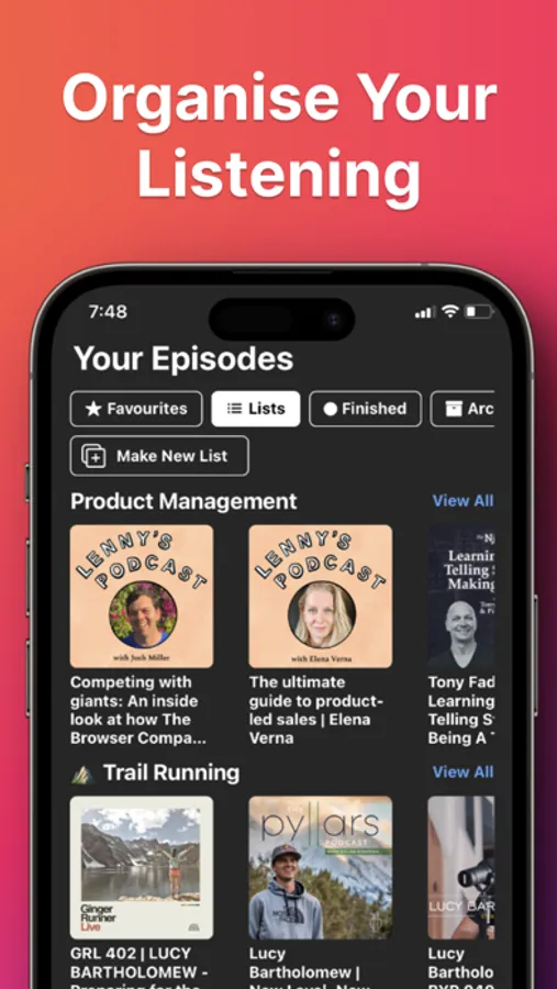 Not sure what to listen to next? No problem. With PodList, you can follow your friends and get recommendations based on what they're listening to. And when you discover a great podcast, sharing it with your friends is as easy as a tap of a button.