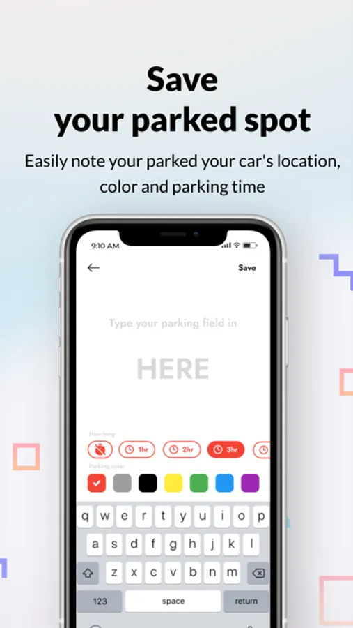 SpotSave is an application that allows you to quickly take note of where you parked your car in crowded parking lots such as shopping malls or airports, and easily track the location, park color and time spent in the parking spot from your phone's lock screen.
