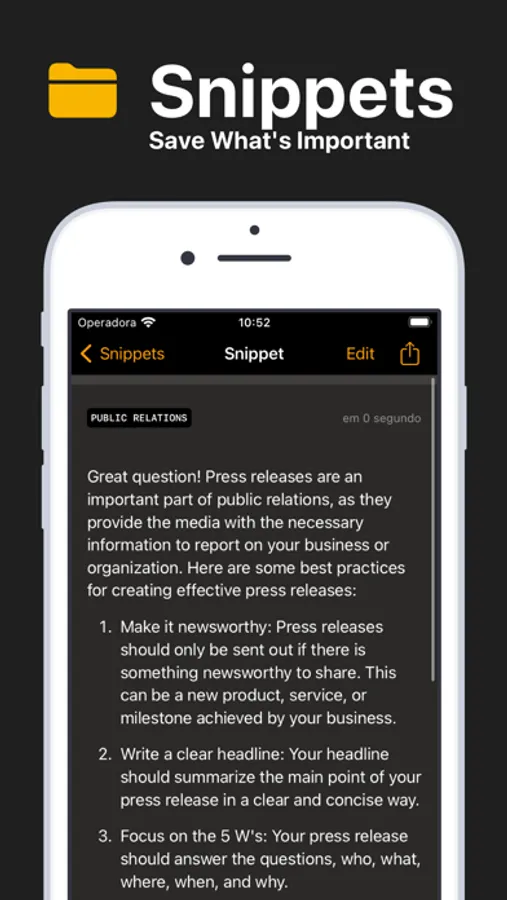 • Snippets: Save, edit, and export your favorite chat messages for future reference or sharing with others.
