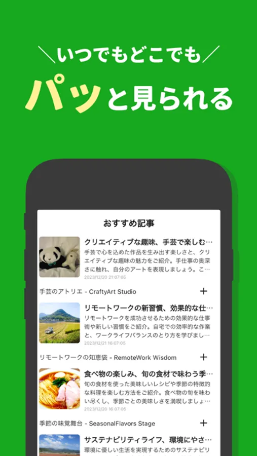 アプリをインストール、アカウントを作成、興味のあるカテゴリを選ぶだけ。かんたんな 3ステップです。もちろん無料です。※アカウント登録は省略可能