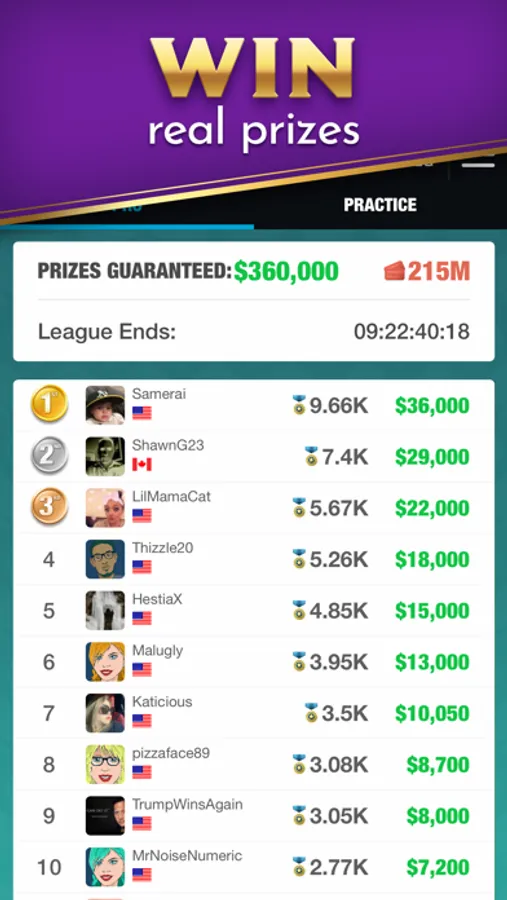 • Prize tournaments are available in about 75% of the world. Prize tournaments are not enabled in the following states: AR, CT, DE, IN, LA, ME, and SD. If you don't live in a real prize-enabled region, you can still play for fun with our virtual currency.