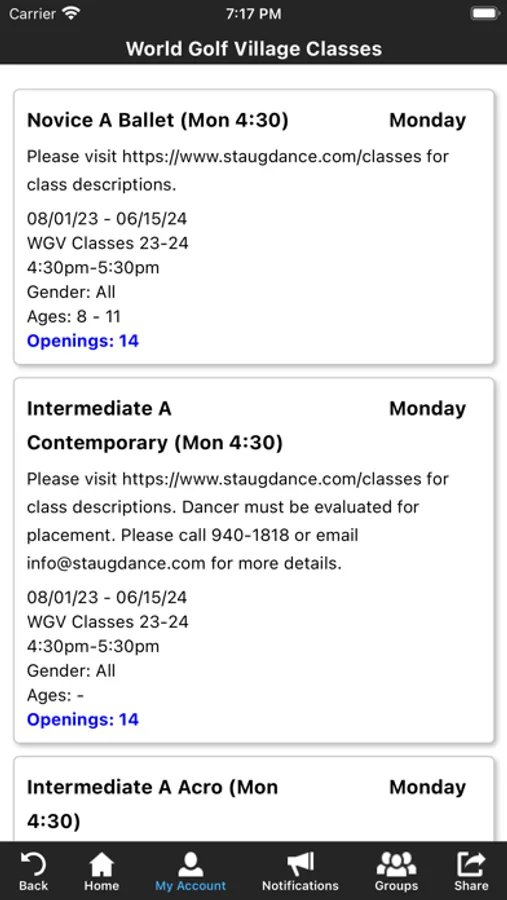 The St. Augustine Dance Academy app allows you to manage your account with ease, register for classes, parties, and special events. You'll also receive important notifications about class changes, closings, registration openings, special announcements, and upcoming events.
