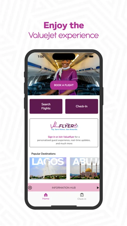 Choose additional services, or change your flights at any time. With the ValueJet app, you can also buy additional bags and also confirm your flight itinerary - all on the go.