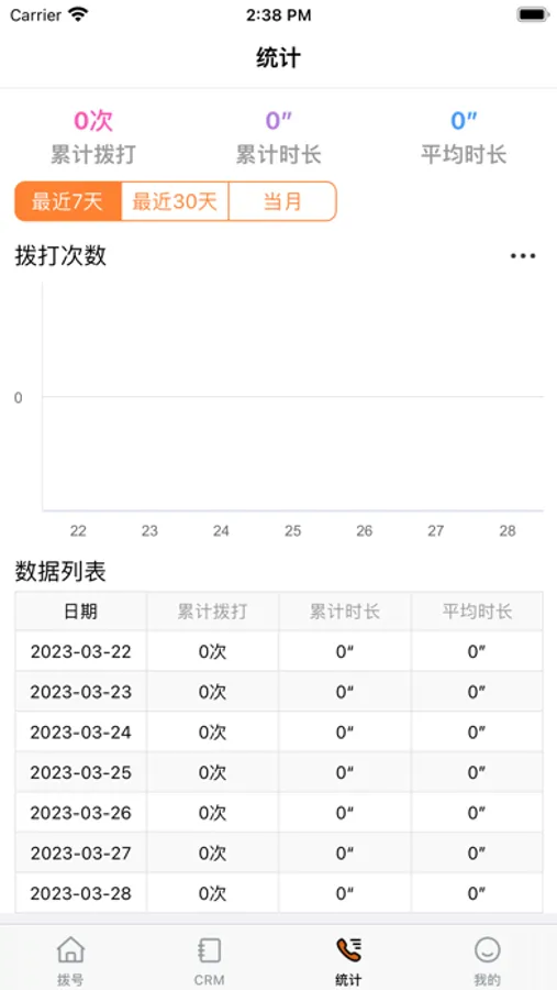 呼叫统计可查看员工拨号数、接通数、接通率、总通话分钟数、风险通话次数等统计数据。