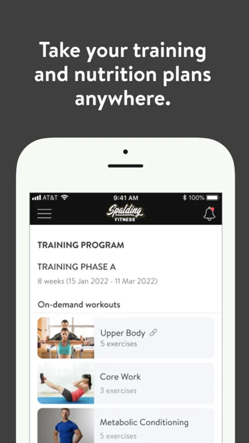 With the Spalding Fitness App, you will have access to workout programs designed specifically to help you reach your fitness and health goals! You can follow & track your workouts, your nutrition, your lifestyle habits, measurements and results–all with the help of your coach.