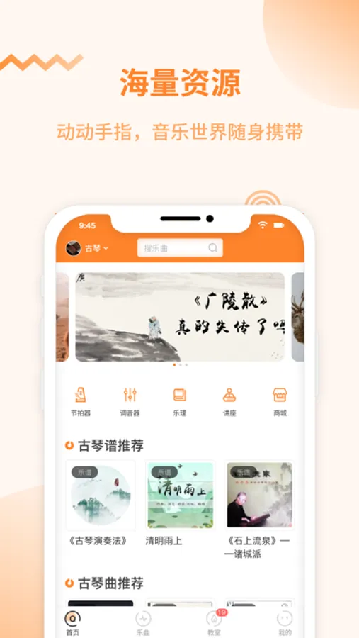 无论是钢琴、古筝、古琴,海量资源统统装进口袋,让你随时随地查阅
