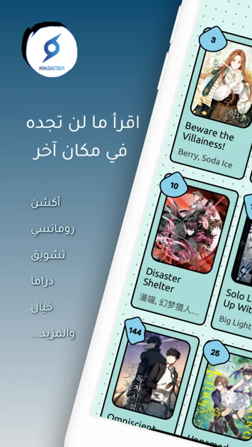 اقرأ أحدث المانجات والمانهات والمانهوات المترجمة حصرياً على تطبيقنا للقراءة. تحديث يومي تجد فيها معلومات وفصول مثرية ومميزة. ابحث بالتصنيف والاسم وتعقب الفصول المقروءة مجاناً وبدون تسجيل.