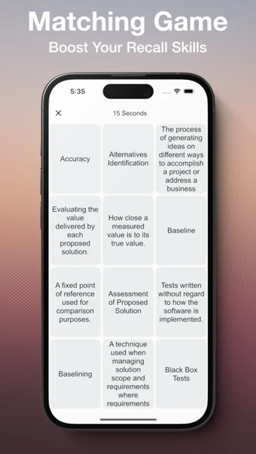 Designed to help you study smarter, not harder, BAprep offers a range of study materials, including flashcards, quizzes, a matching game, and an engaging Jeopardy-style game. With BAprep, you can deepen your understanding of business analysis concepts, familiarize yourself with industry best practices, and master the CBAP/CCBA terminology and methodology.
