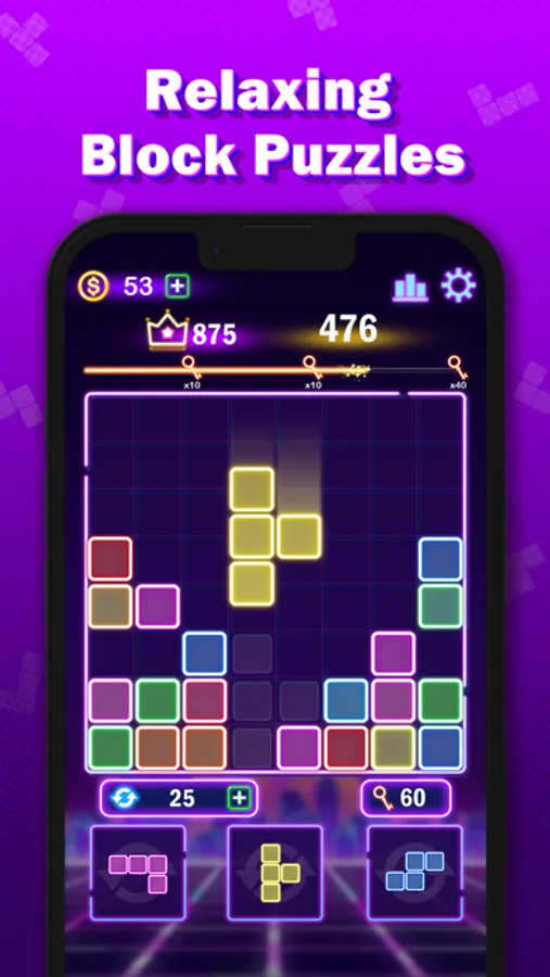 Glow Block Puzzle is a new neon-style block puzzle game with colourful and exciting graphics!