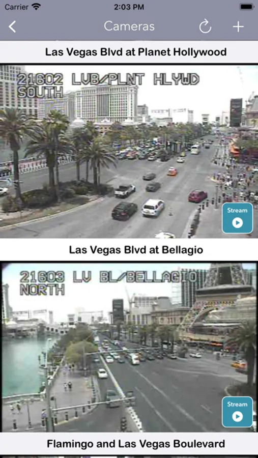 Create custom groups of cameras based on your frequented routes and then simply scroll through the list of images. This makes viewing traffic and road conditions significantly faster. If you prefer to view a single camera at a time, this option is also available.