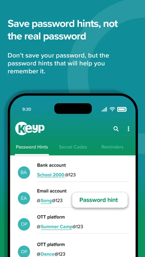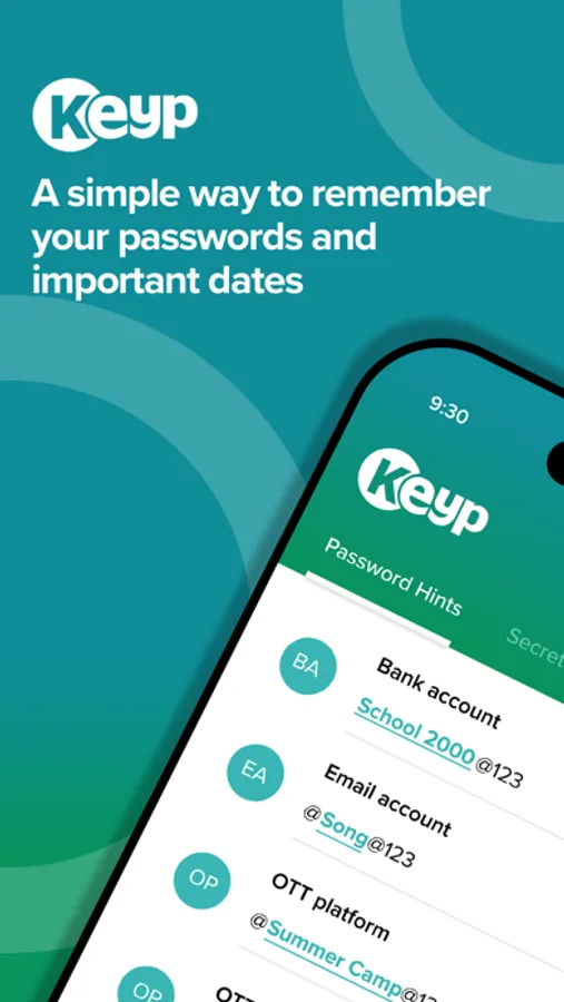 Keyp: KEYP is to Keep/ store, password hints in a systematic manner with