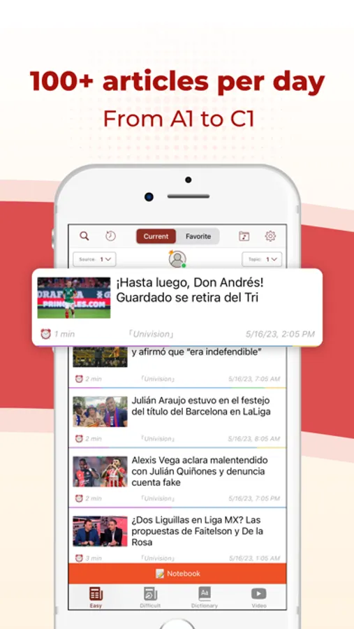 With a diverse selection of the latest Spanish news and articles divided into basic and advanced levels, TODAI Easy Spanish News is a highly effective application for millions of Spanish learners worldwide. Whether you're interested in topics like economy, society, lifestyle, sports, or culture, this app has you covered.