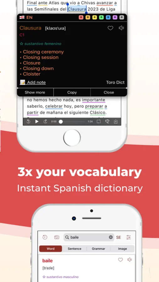 • Highlighted vocabulary lists based on DELE A1-C2 levels