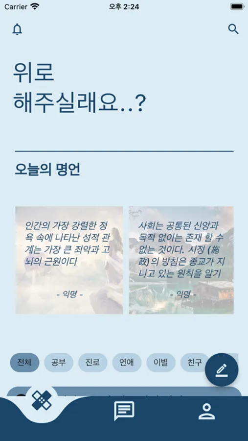 고민리스트에 누구나 위로를 작성할 수 있어요.