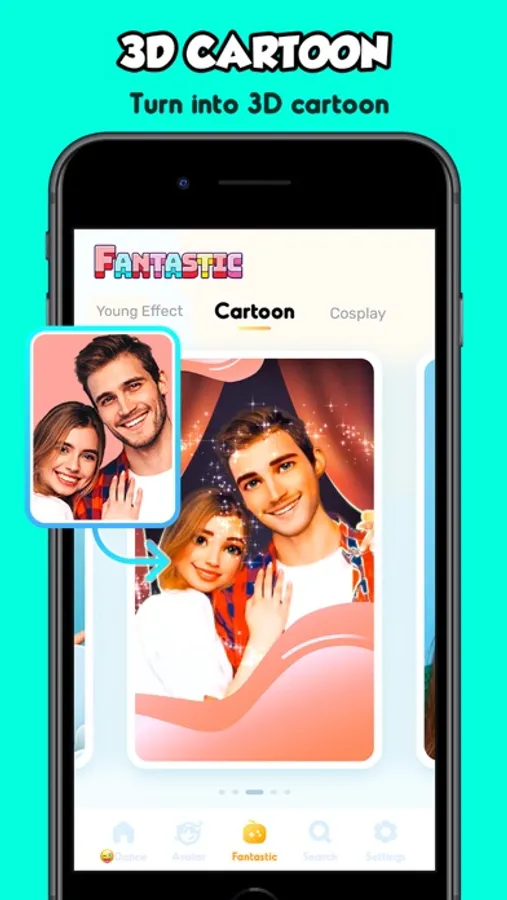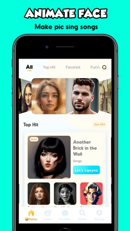 The AI Face Photo lets you create an animation from any photo. You don’t need editing skills. Just take a selfie, add lip sync effect and make your face dance!.